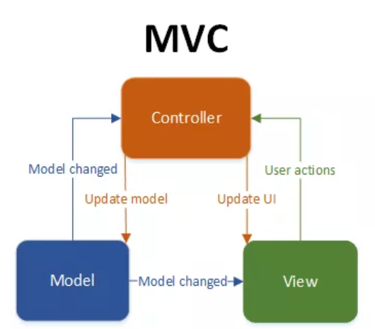 - Controller : 유저의 이벤트에 근거하여 Model과 View를 제어한다.
