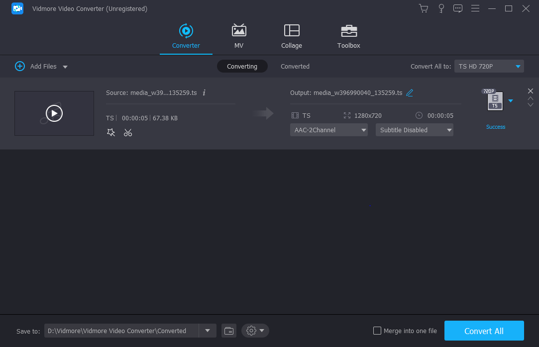 혹시 ts 파일 옵션 문제일 수도 있으니 url로 재생이 잘 되는 ts 파일을 받아본다.