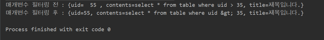 System.out.println("매개변수 필터링 전 : " + params.toString());