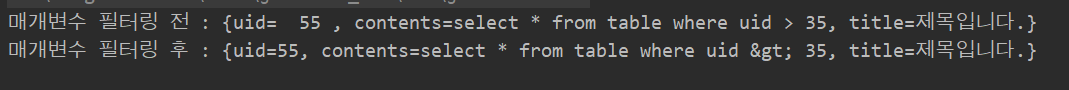 System.out.println("매개변수 필터링 전 : " + params.toString());